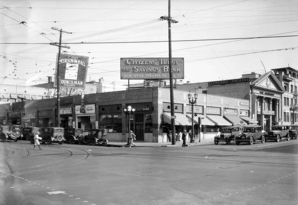 But right there on the corner of Seventh and Alvarado, a living relic of of an entirely different time has stood since 1947: Langer’s Delicatessen, home of the only hot pastrami sandwich West and East Coast food critics can agree on. And only thanks to the return of rail do we have even it. The Red Line subway, locally dubbed the “Pastrami Express”, entered service in 1993, immediately bringing back the hungry workers who had otherwise long since stopped going near the place. Sitting down for a meal at Langer’s, its interior so immaculately preserved that almost resembles a theme park’s simulacrum of lunchtime postwar urban America, takes you back to a time when, if the park still had so many fire-and-brimstone preachers, then at least they probably didn’t bring loudspeakers.