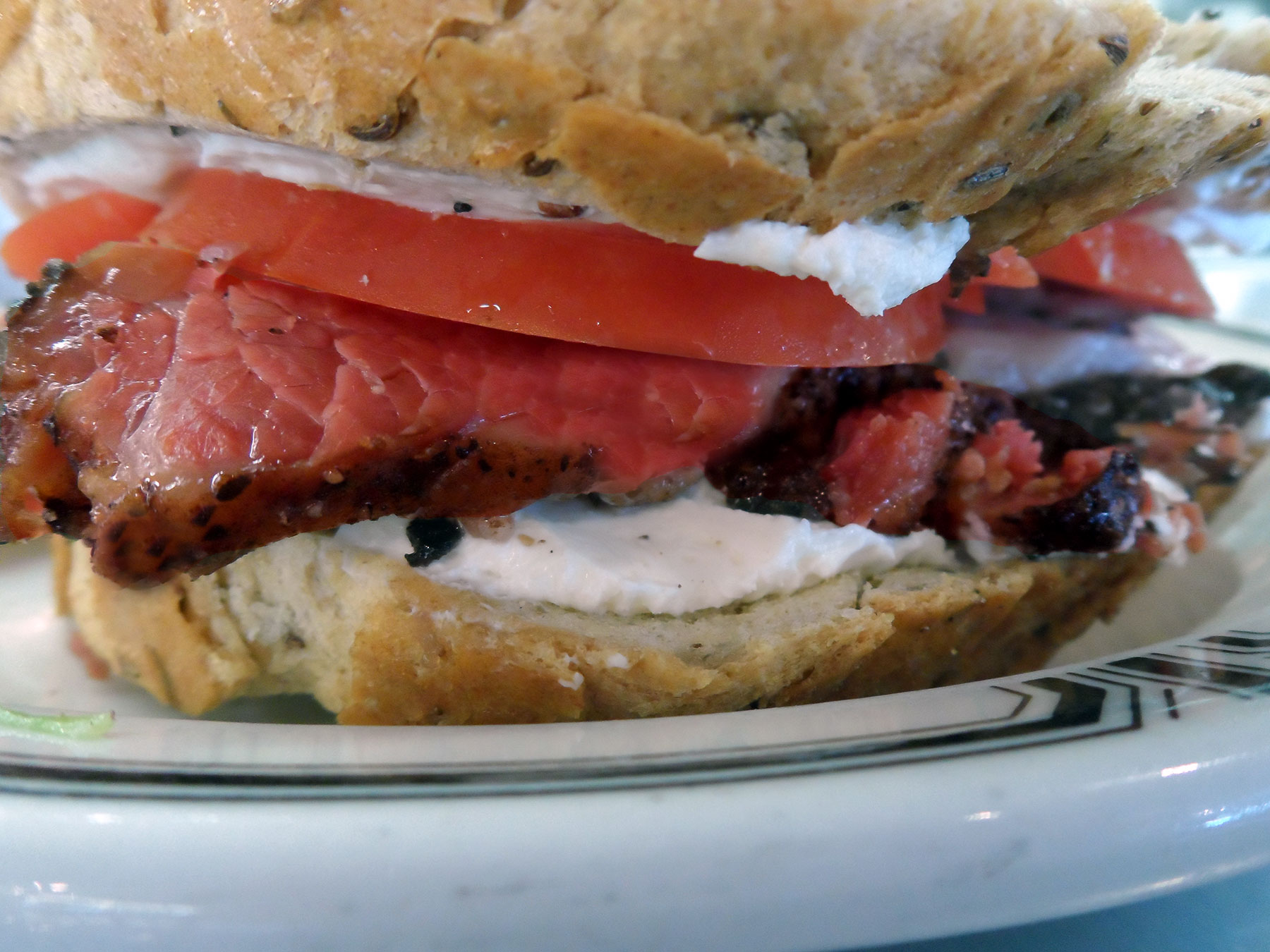 The Langer’s #65 – HOT PASTRAMI with Cream Cheese and Sliced Tomato – an amazing taste combination. Download