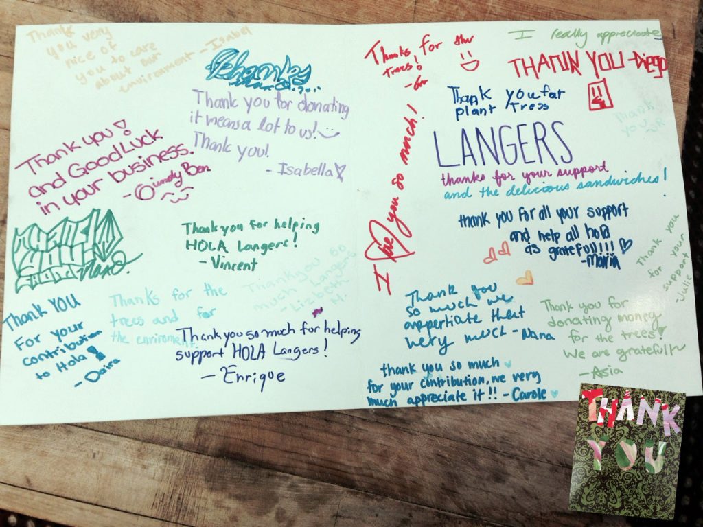 When HOLA’s first planting at Lafayette Park was destroyed by vandals, Norm asked if he could help support a replanting, as well as support their plans for trees at MacArthur Park – directly adjacent to Langer’s Deli’s historic location at 7th and Alvarado. HOLA Communications Director Lee Schube was thrilled to accept Norm’s support, and the MacArthur Park tree planting – featuring more than 30 HOLA young people (Rampart-area students of all ages) was a complete success.