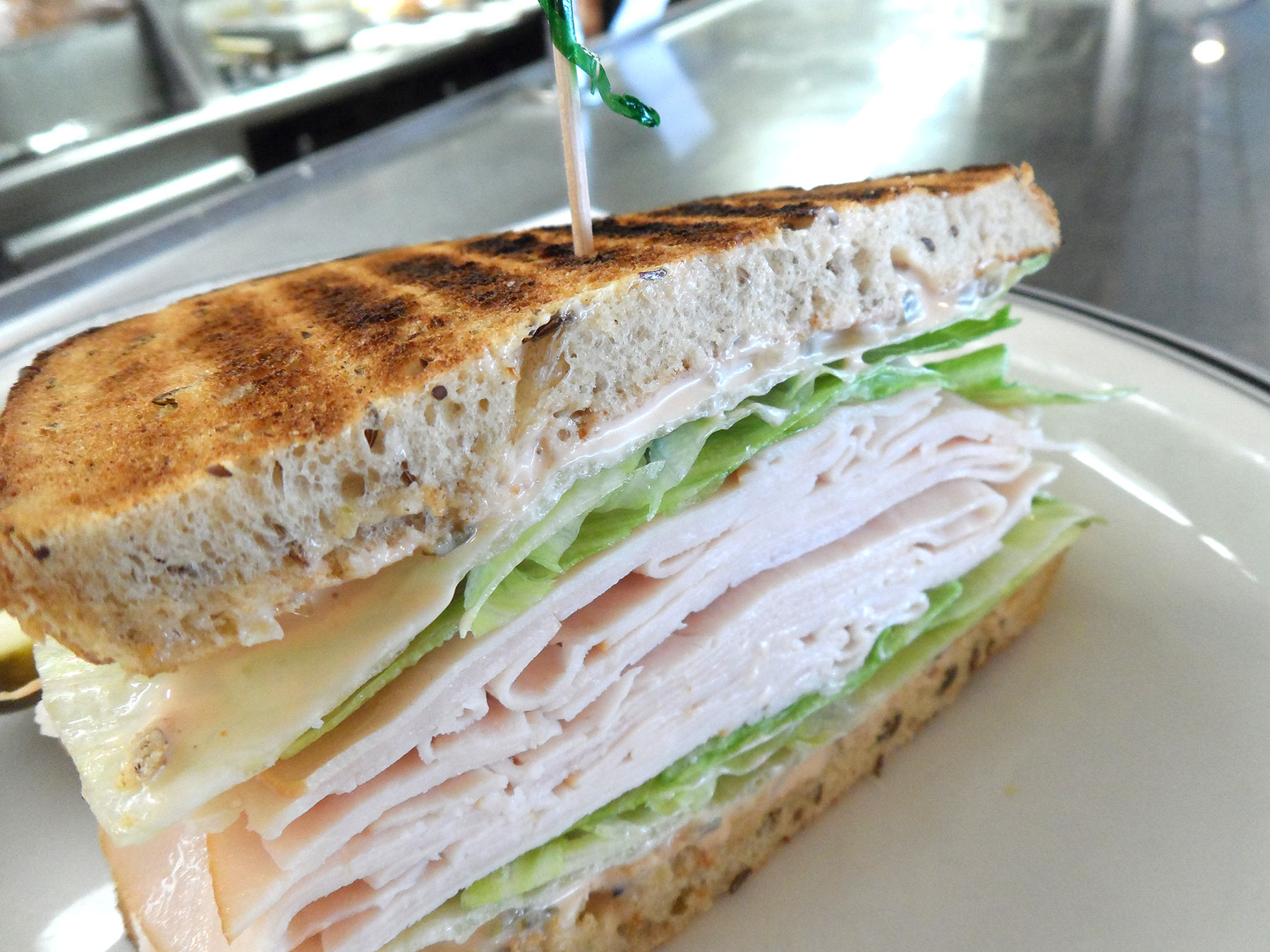 A delicious Turkey Sandwich on toasted Rye Bread, with lettuce and Swiss. Download