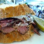 A Langer’s #10 on French Roll – hand-cut hot pastrami, Russian dressing and Swiss cheese. Truly a delicious sandwich worthy of your consideration at lunch today.