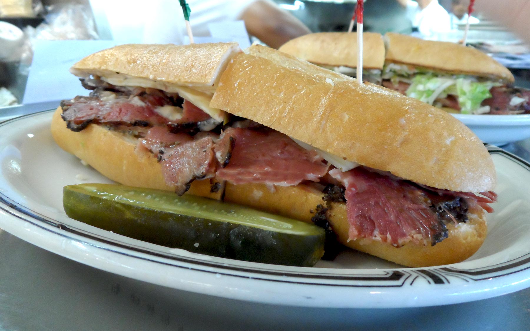 A Langer’s #10 on French Roll – hand-cut hot pastrami, Russian dressing and Swiss cheese. Truly a delicious sandwich worthy of your consideration at lunch today.