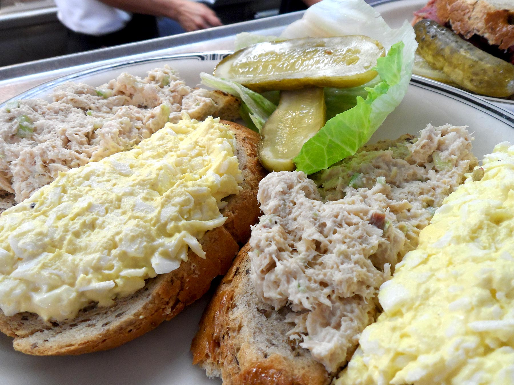 Chopped Egg and Tuna Salad open face – a delicious and refreshing way to enjoy the classics at Langer’s Delicatessen.